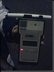 The breathalyzer is an Intoxilyzer® 400 Made by CMI Inc. Breathalyzers are not 100% accurate and might produce abnormally low or high alcohol counts given a situation. Here in Mexico, if you believe you have been detained unjustly due to a wrong B-Alyzer test, you can request a blood test, which the state must provide. Also, so you know, onion, mouthwash or breathmints can fool a person but not one of these, before you try anything funny. Oh, mind you, the checkpoints have a towing truck readily available, so if you don't pass the test, I do believe your vehicle gets towed, so to add insult to injury, you would have to go get it an pay an extra fine too.